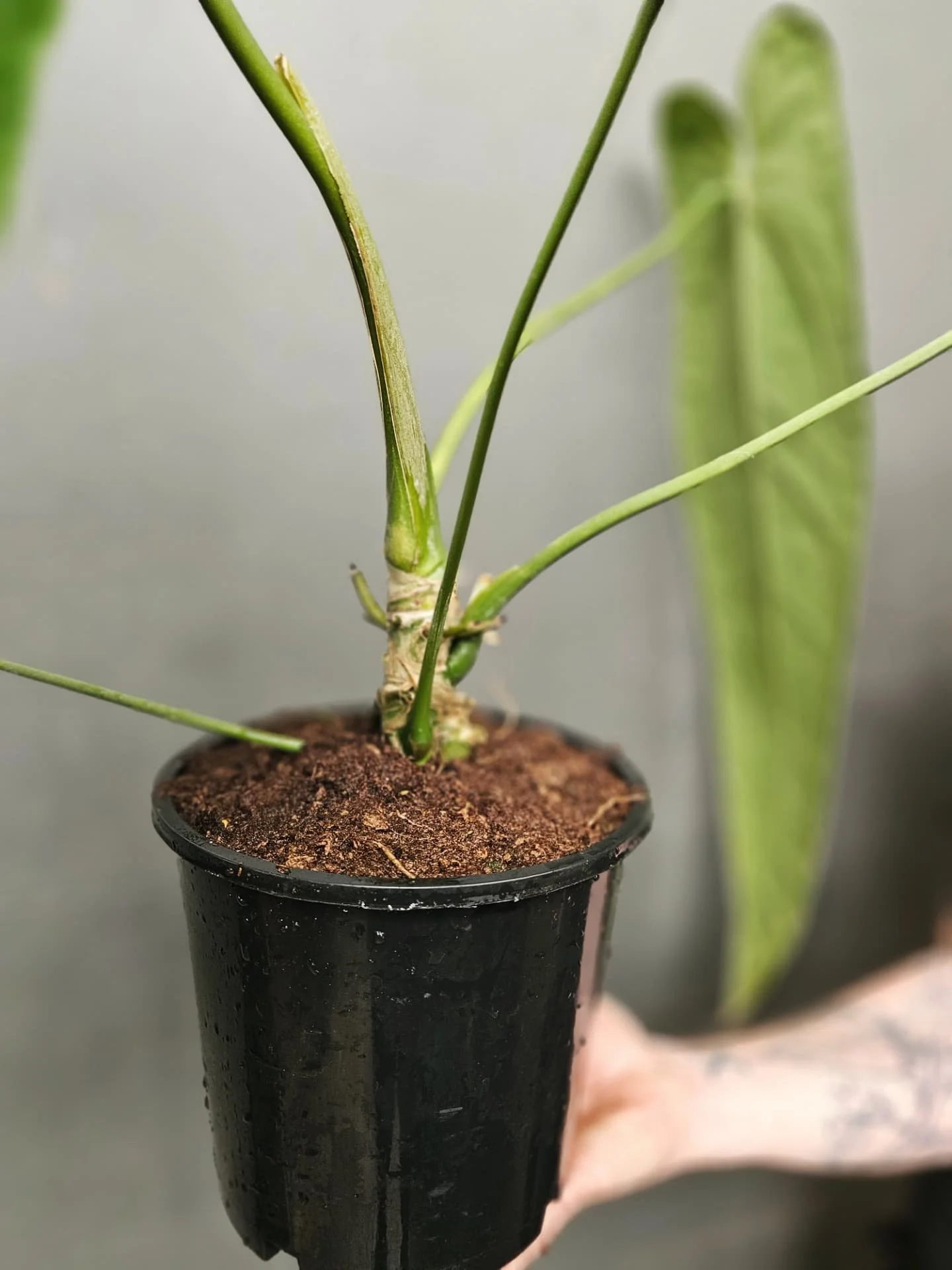 The Anthurium Warocqueanum, sometimes known as the Queen Anthurium is a rare plant with very long, velvet feel green leaves and a prominent white vein. The leaves of the Warocqueanum grow very long and large in the right conditions. This plant enjoys a bright spot in non-direct sun and likes to stay moist, but not wet between waters. Make sure you don’t overwater as it will quickly suffer sitting in wet soil. This plant is propagated and grown by Verdant Dwellings. PLEASE NOTE, this plant is NON TC.