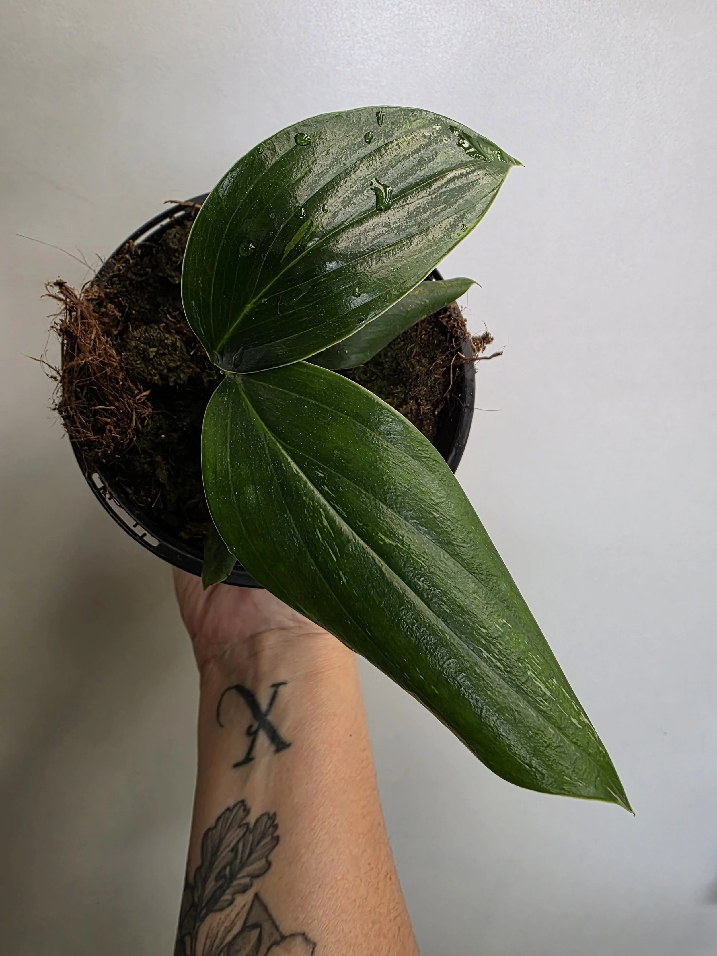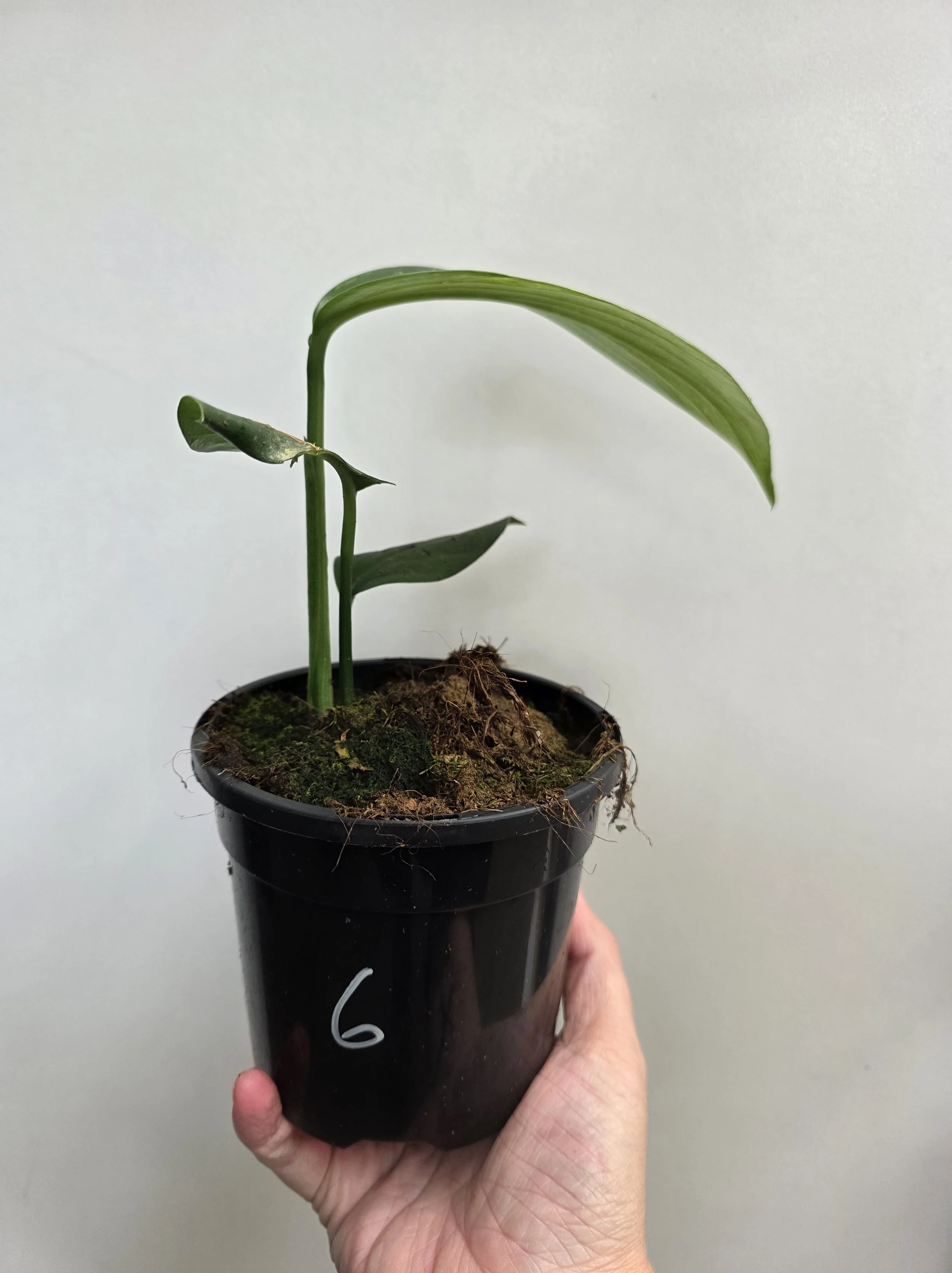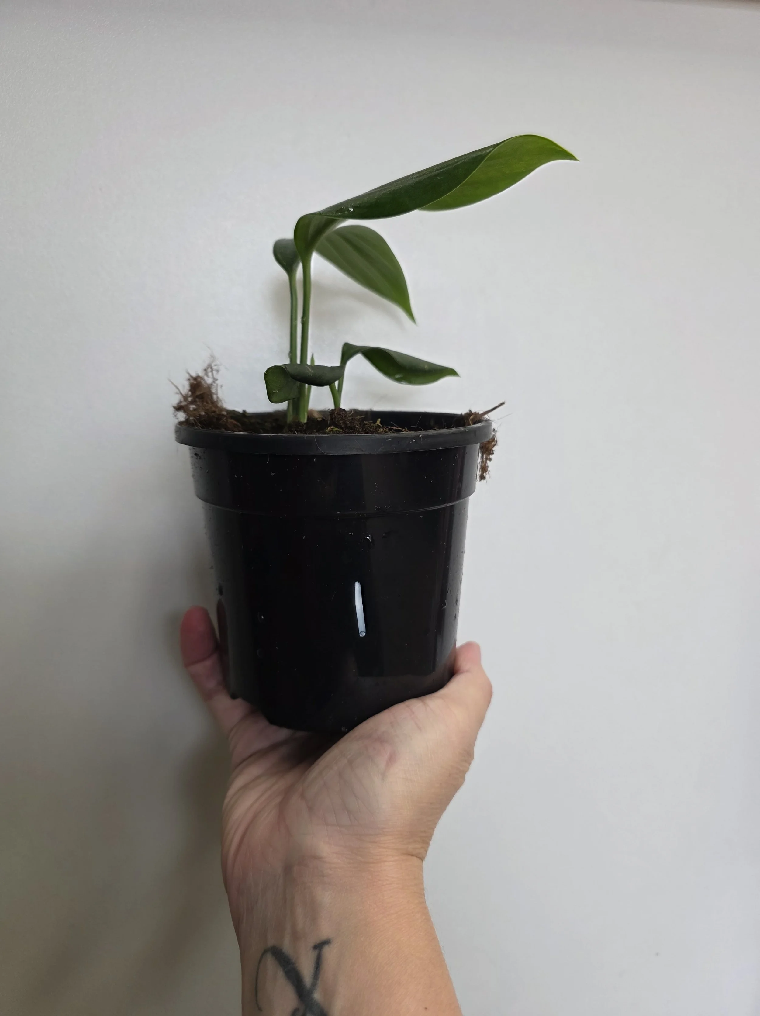 The Rhaphidophora decursiva or Dragon Tail is a glossy green-leaved vining plant. This one is naturally variegated showing both light green and pale speckled variegation on all of its leaves, very faint on the initial leaf. As this plant matures it will develop more splits in the leaves looking similar to a dragon’s tail. This plant can be trained to climb or left to trail down from a basket or shelf. It needs a bright position and to dry in the soil between waters but not be left dry. Propagated and grown by Verdant Dwellings. PLEASE NOTE: As this is naturally occurring variegation, the level of ongoing variegation is unknown and cannot be guaranteed. Please consider before purchasing.